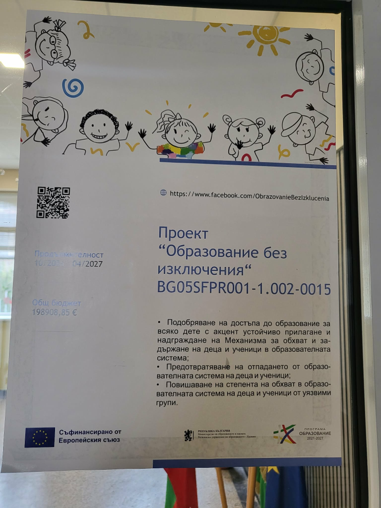 Проект BG05SFPR001-1.002-0015 „Образование без изключения“ по Програма „Образование“ 2021-2027 г.,